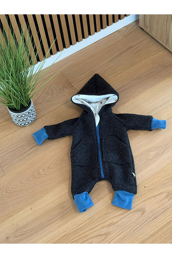 Dieser handgefertigte Walkoverall vereint Wärme, Stil und liebevolle Handarbeit. Der hochwertige Walkstoff aus Naturmaterialien sorgt für ein angenehmes Tragegefühl und ein optimales Klima – atmungsaktiv, windabweisend und wärmend zugleich. Das weiche Innenfutter aus Jersey (95% Baumwolle, 5% Elasthan) schenkt zusätzliche Behaglichkeit, während der praktische Reißverschluss für Komfort im Alltag sorgt.